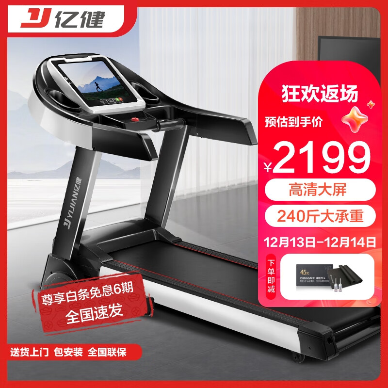 亿健(YIJIAN) 跑步机家用JD618可折叠智能10.1吋高清大屏健身器材价格:2299.00元!