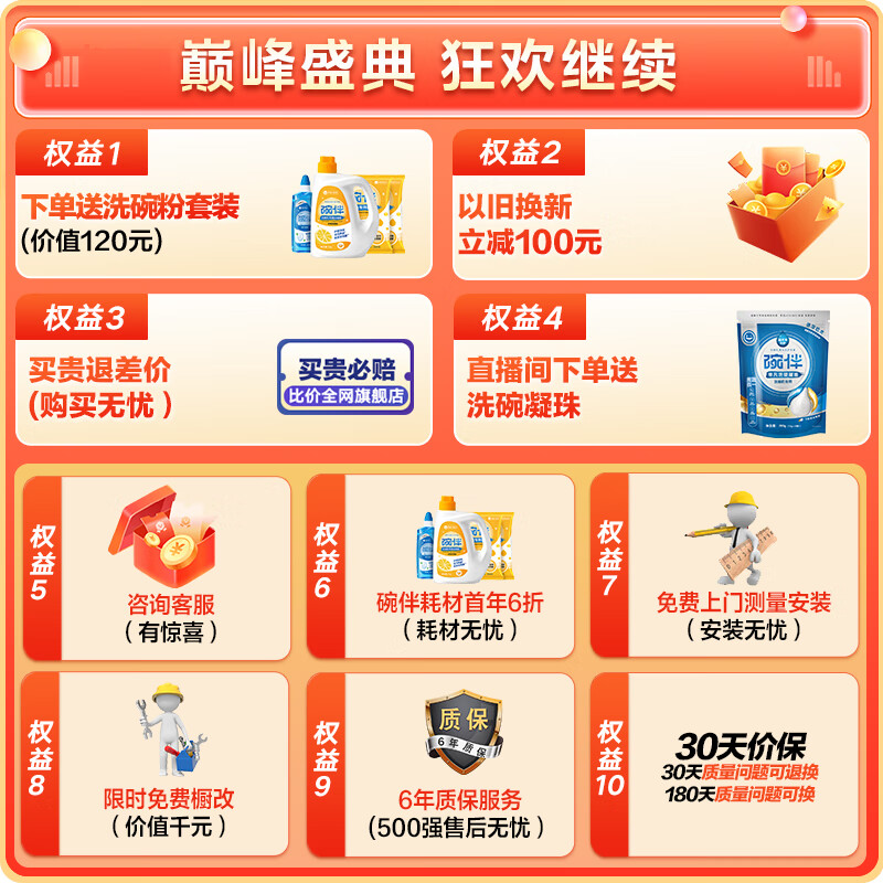 1、这个洗碗机非常好,看起来非常的棒外观大气简约,洗碗干净排水快,没有噪音,还能当碗柜用买的非常值。客服也感觉非常给力,双十一的活动力度大,给力。