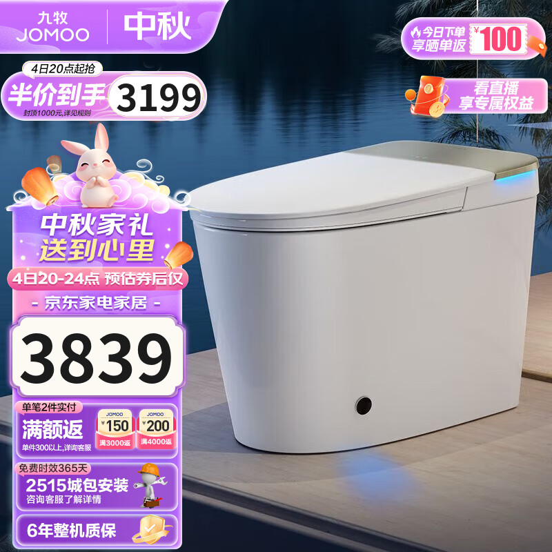 九牧(JOMOO)无水压限制智能马桶魔力泡低音冲自动翻盖坐便器ZS770P 400坑距价格:4849.00元!