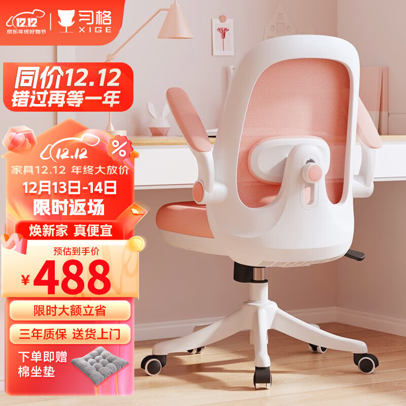 习格家用电脑椅学生学习写字书房座椅办公椅转椅职员会议椅舒适久坐 9012高配版糖果粉价格:559.00元!