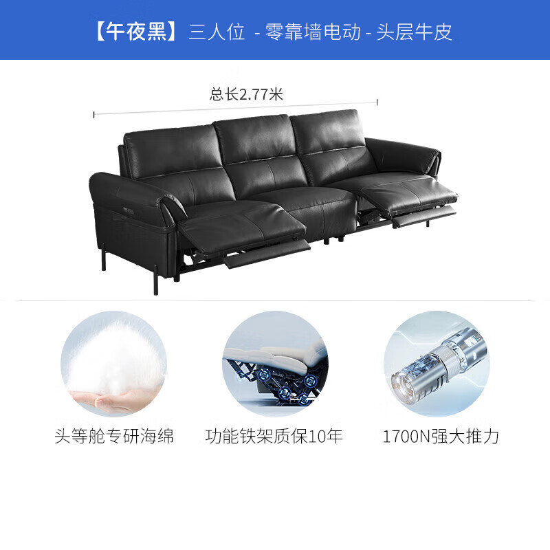 芝华仕(CHEERS)头等舱零靠墙意式轻奢真皮功能沙发大户型客厅芝华士50795黑大三价格:5999.00元!
