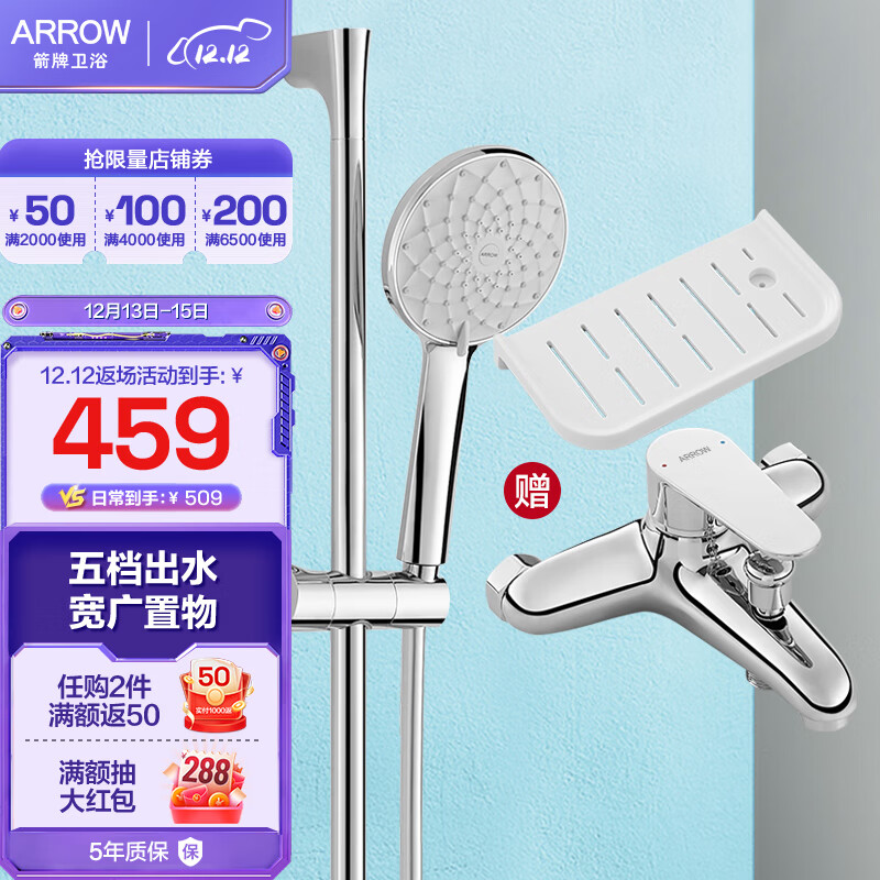 箭牌(ARROW)双功能淋浴花洒套装卫生间精铜淋浴器喷头沐浴莲蓬头淋雨冷热花洒 圆形双功能置物架花洒3201-P价格:699.00元!