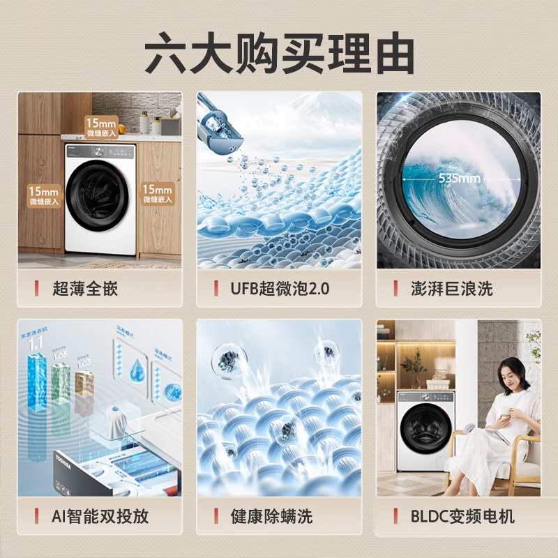 东芝(TOSHIBA)滚筒洗衣机全自动家用【玉兔2.0 DG-10T19BI】超薄全嵌 10公斤大容量 智投 银离子除菌 以旧换新价格:3899.00元!