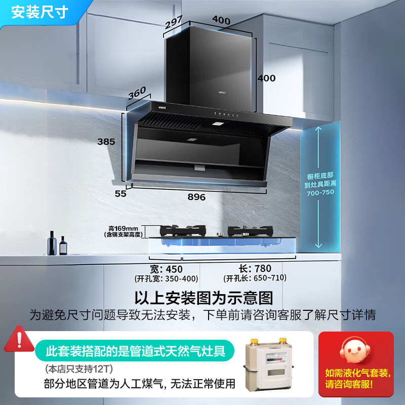 烟机安装尺寸:900±50mm