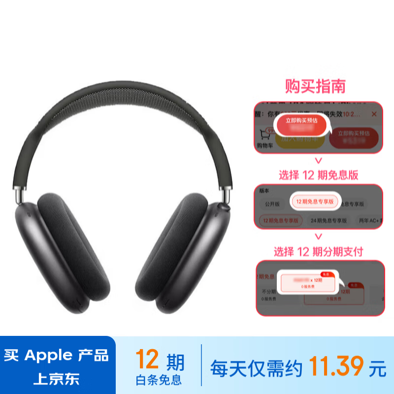 Apple/苹果【12期免息】AirPods Max-深空灰色 无线蓝牙主动降噪头戴式耳机 适用iPhone/iPad/Watch/Mac价格:4099.00元!