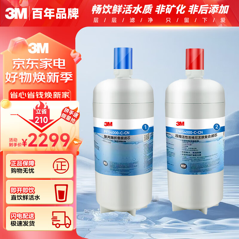 3M净水器家用净水机双子智能DWS4000T替换滤芯 DWS4000-C-CN+PFS4000-C-CN价格:2299.00元!