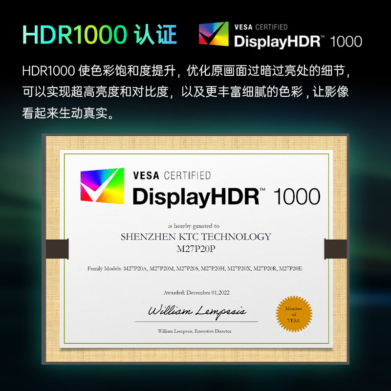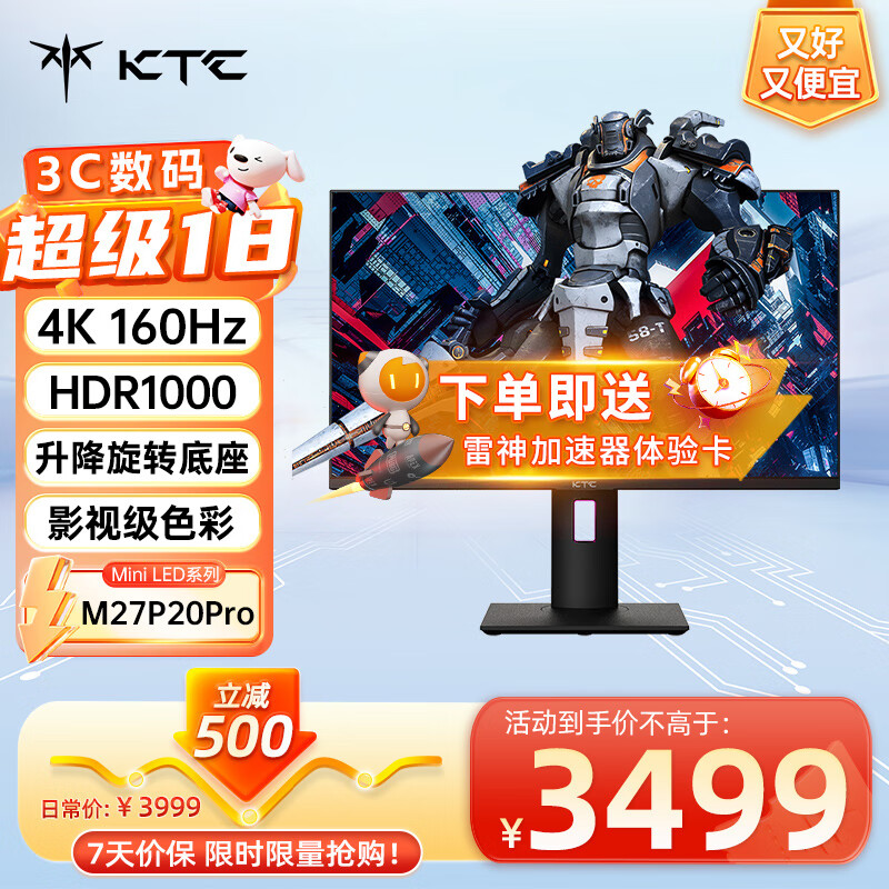 KTC 27英寸 4K160Hz MiniLED 广色域1msIPS低蓝光Type-C90W 旋转升降HDR1000电脑显示器 M27P20 Pro价格:3999.00元!