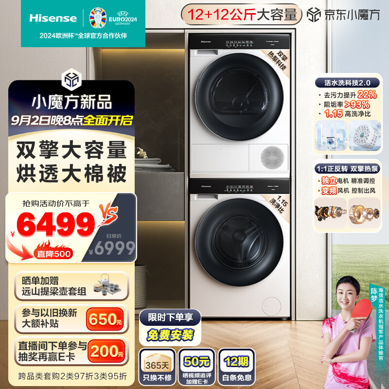 海信洗烘套装棉花糖MAX 12公斤滚筒洗衣机+双擎大容量热泵烘干机 1:1正反转活水洗 HG12SE5+SE5价格:6499.00元!