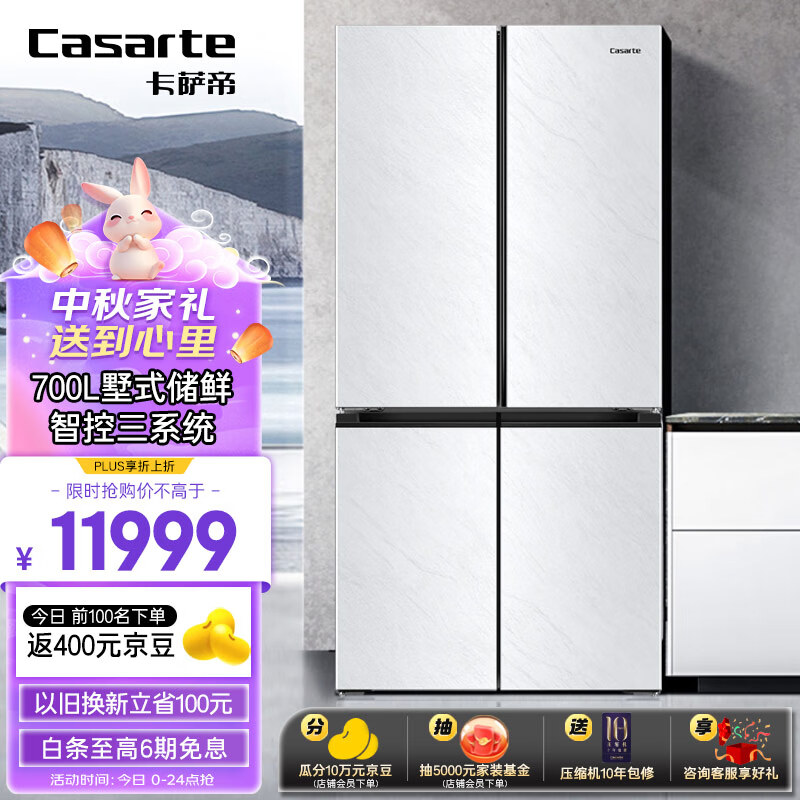 卡萨帝(Casarte)700升原石冰极岩十字四开门双开门白色无霜大容量电冰箱一级能效变频家用BCD-700WGCTDM7WYU1价格:11999.00元!
