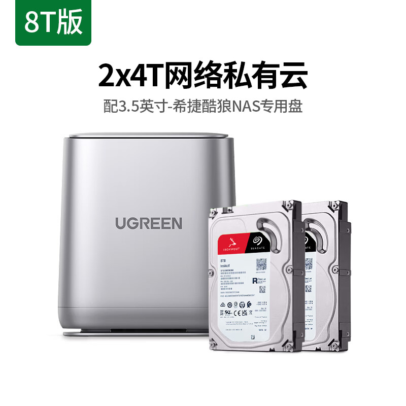 绿联(UGREEN) 私有云DH2100+ 8T双盘位Nas网络存储个人云硬盘服务器相册备份文件同步手机平板扩容适用iPhone15价格:2699.00元!
