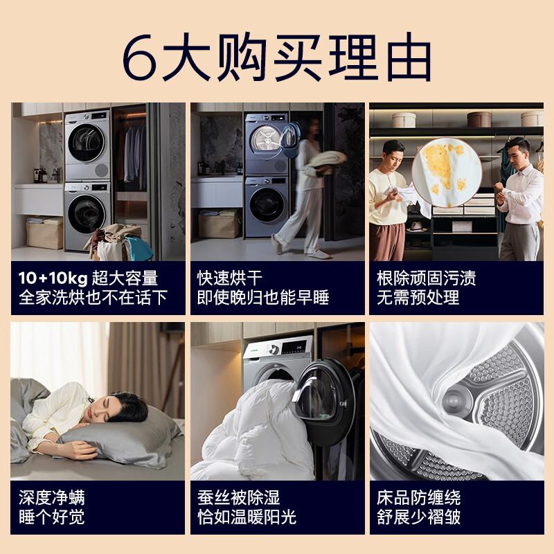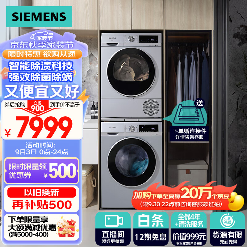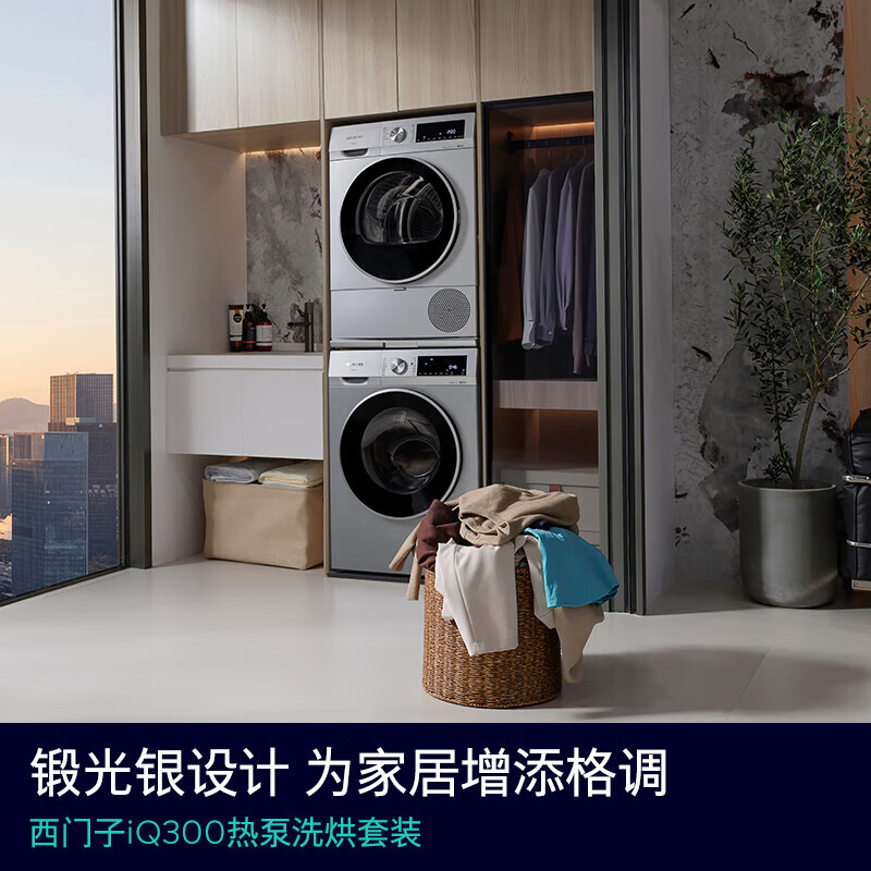 西门子(SIEMENS)iQ300洗烘套装 10kg 智能除渍 除螨 滚筒洗衣机+10kg 热泵烘干机 德国空气护理 108AW+D80W价格:8899.00元!