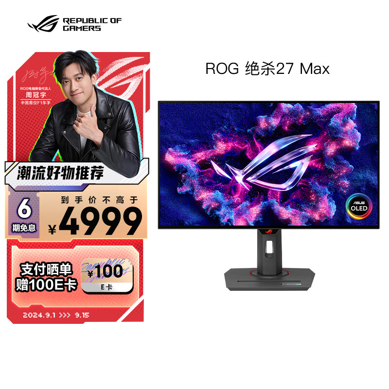 华硕ROG XG27AQDMG绝杀 26.5英寸2K电竞显示器240Hz显示器0.03ms响应HDR400真10Bit G-SYNC OLED显示器价格:4999.00元!