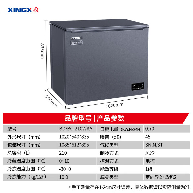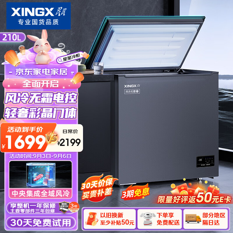 星星(XINGX)210升家用商用风冷无霜茶叶保鲜冰柜 冷藏冷冻转换卧式冷柜 电脑控温节能顶开门冰箱BD/BC-210WKA价格:1699.00元!