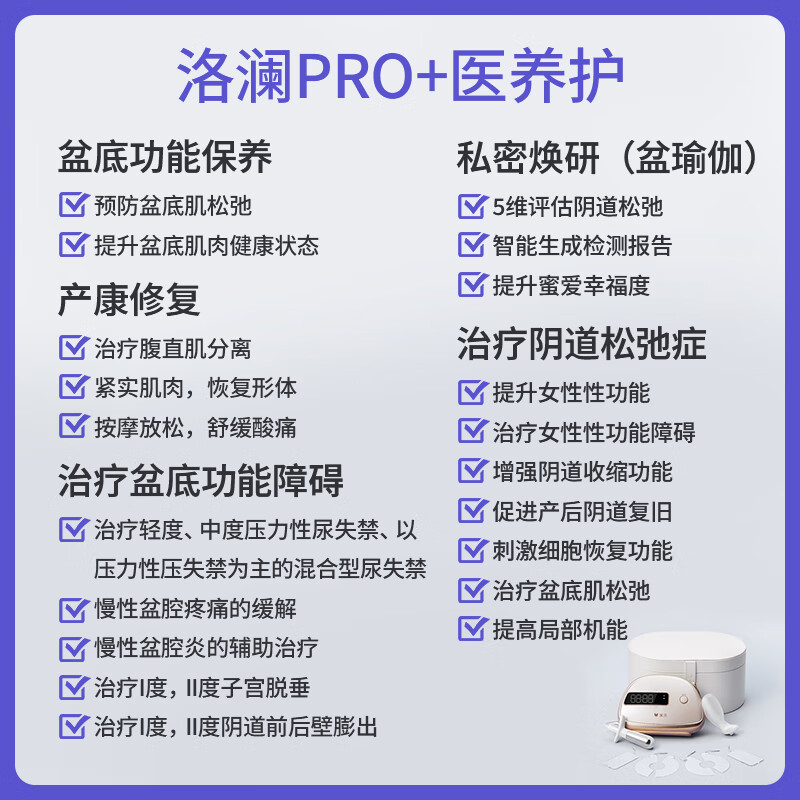 3、买的pro,功能比较多,生了三个孩子还是要对自己好点。这个盆底的功能跟我在医院做的模式一样的,其他的就当放松理疗做,总之很满意。