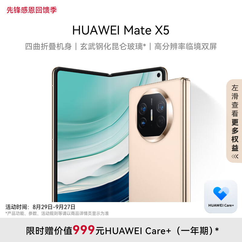 华为(HUAWEI) Mate X5 折叠屏手机 12GB+256GB 羽砂金价格:11499.00元!