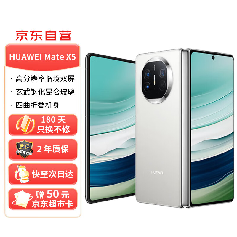 华为(HUAWEI)Mate X5 折叠屏手机 12GB+512GB 羽砂白价格:11799.00元!