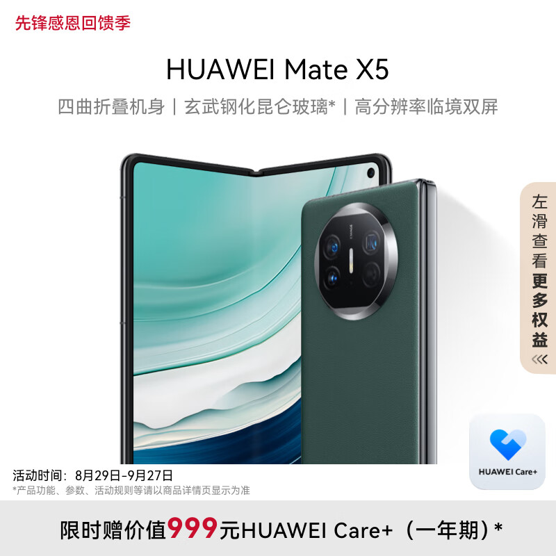 华为(HUAWEI) Mate X5 折叠屏手机 12GB+256GB 青山黛价格:11499.00元!