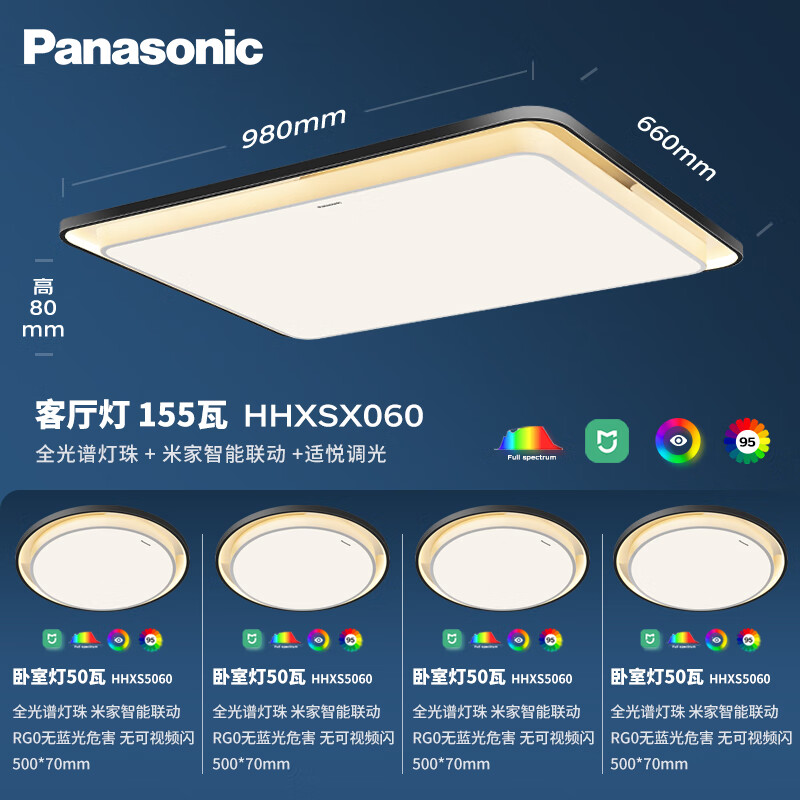 松下(Panasonic)吸顶灯全光谱护眼全屋米家智能led现代简约灯具泽巡四室一厅套装价格:4499.00元!