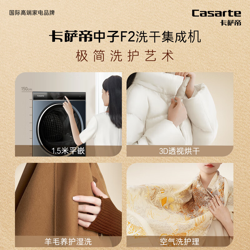 卡萨帝(Casarte)中子和美F2洗干集成机 12+12公斤 3D透视烘干 1.5米纯平嵌入 养护湿洗 紫外除菌 C9 YF12BL12L2EU1价格:21999.00元!