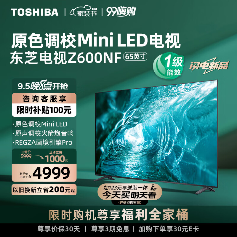 东芝电视65Z600NF 65英寸 原色调校Mini LED 火箭炮音响 4K144Hz超清液晶智能平板游戏电视机 以旧换新价格:4999.00元!