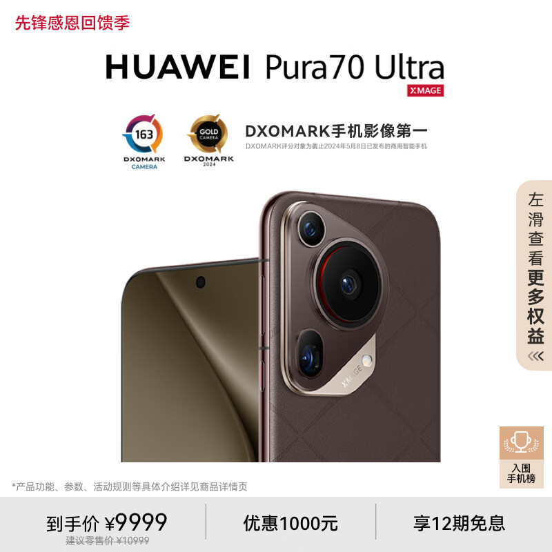 HUAWEI Pura 70 Ultra 摩卡棕 16GB+1TB 超聚光伸缩摄像头 超高速风驰闪拍 华为P70智能手机价格:9999.00元!