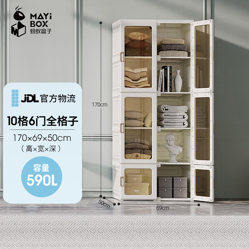 蚂蚁盒子(MAYIHEZI)免安装可折叠塑料成人简易衣柜出租房衣服收纳防尘10格6门全格子价格:559.00元!