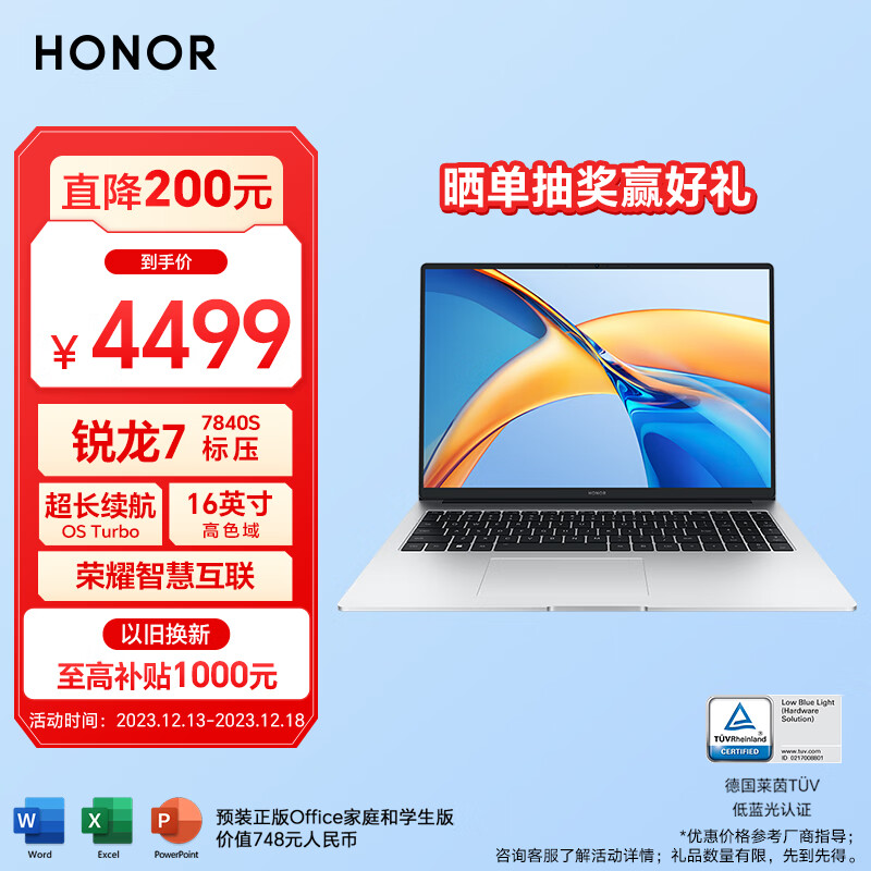荣耀笔记本电脑MagicBook X 16 Pro 锐龙版 2023 R7-7840HS标压处理器 16吋高色域护眼大屏 长续航 高性能轻薄本价格:4499.00元!