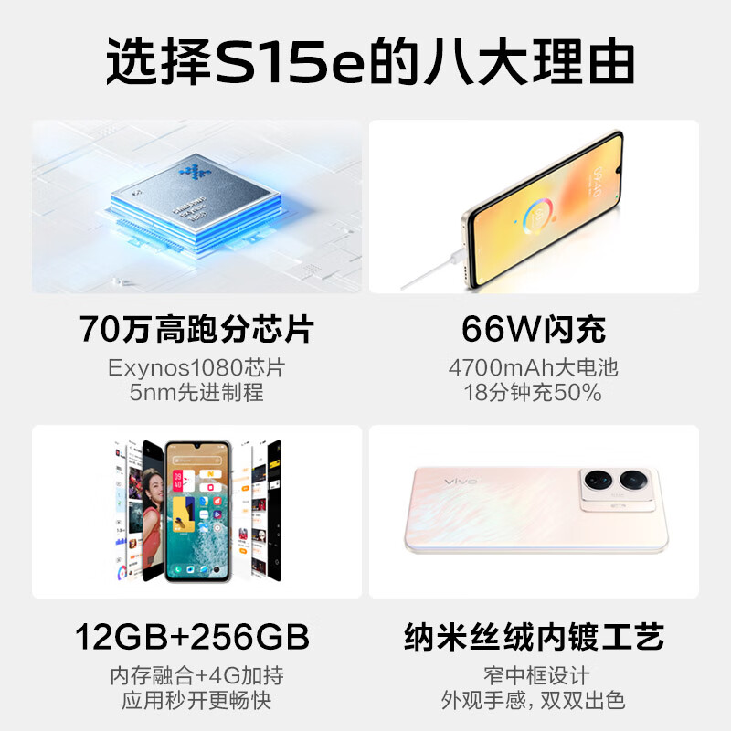 vivo S15e 12GB+256GB 萤石黑 5nm高跑分芯片 66W超级闪充 5000万超质感人像 5G 快充 拍照 手机价格:1999.00元!