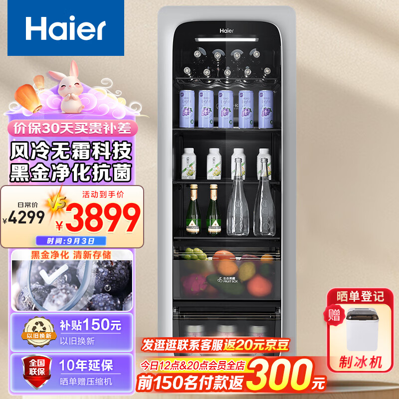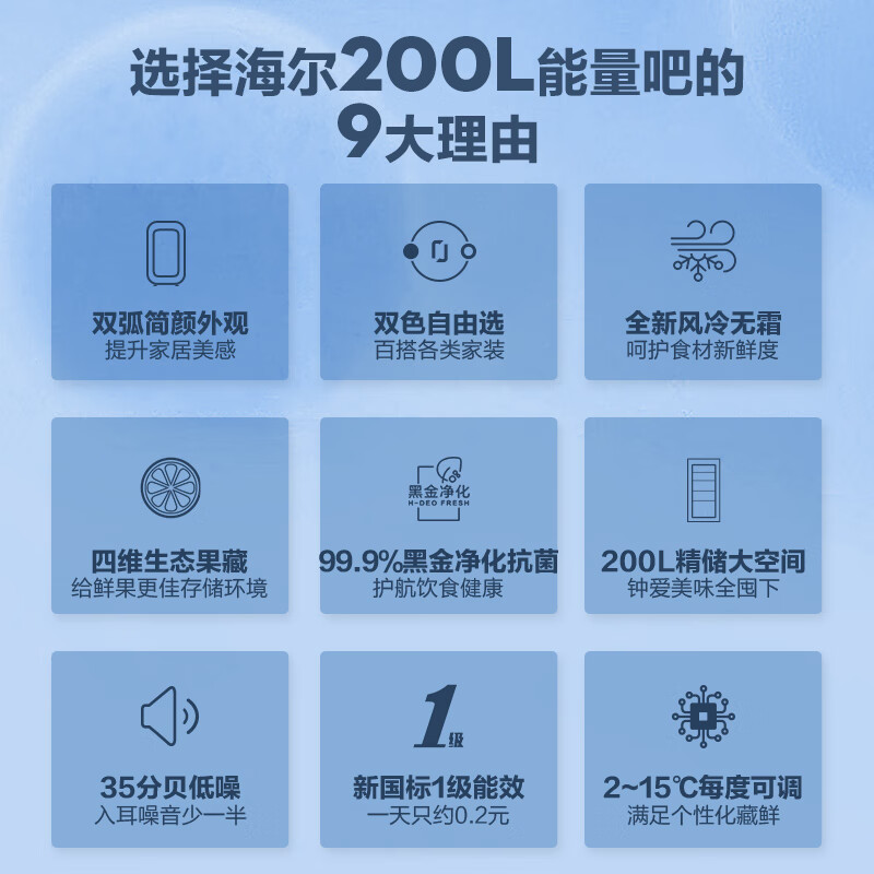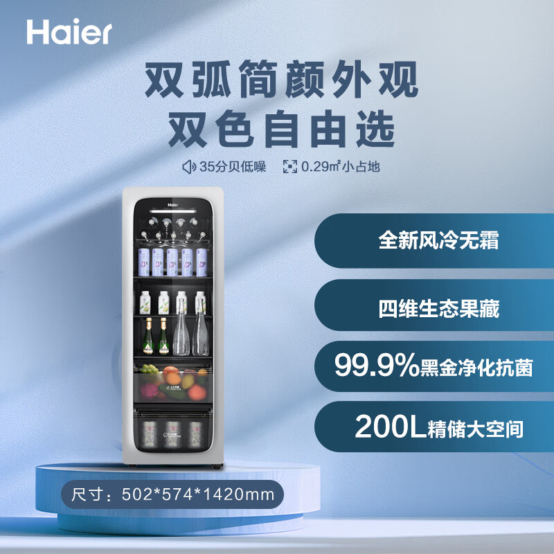 海尔200升一级能效家用客厅办公室冷藏柜暖藏冰吧能量吧茶叶饮料水果蔬菜保鲜柜小型冰箱LC-200WLH9ES1价格:3899.00元!