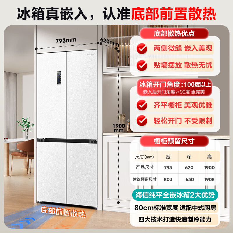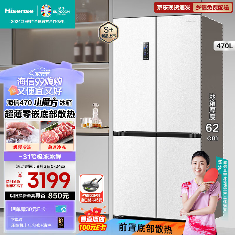 海信(Hisense)470小魔方冰箱超薄零嵌入式四开门冰箱十字家用智控变温一级能效双变频净味BCD-470WMK1DPU白价格:3499.00元!