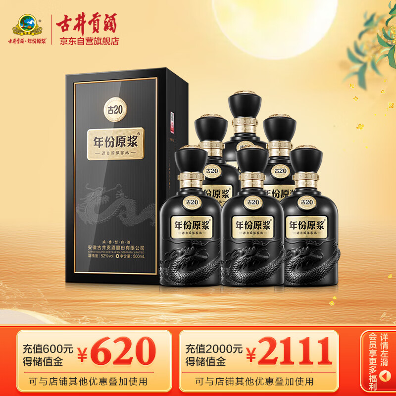 古井贡酒年份原浆古20 浓香型白酒 52度500ml*6瓶 整箱装(内含礼品袋)价格:3757.58元!