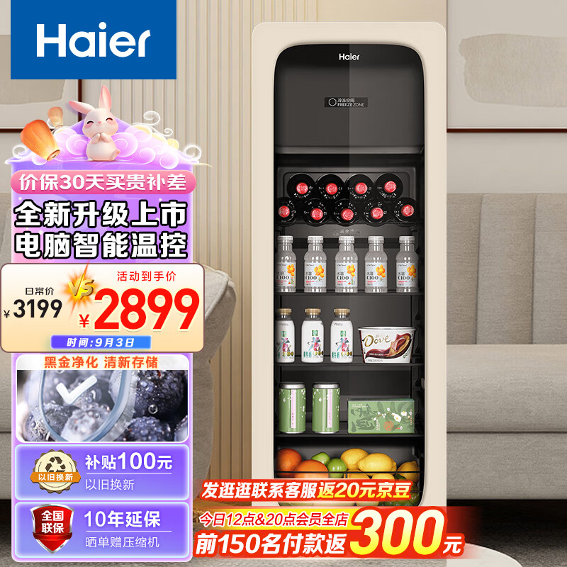 海尔(Haier)133升家用客厅办公室冷藏柜双温暖藏冰吧茶叶饮料蔬果保鲜柜囤货小冰箱一级能效DS0133LH9EY1价格:2899.00元!