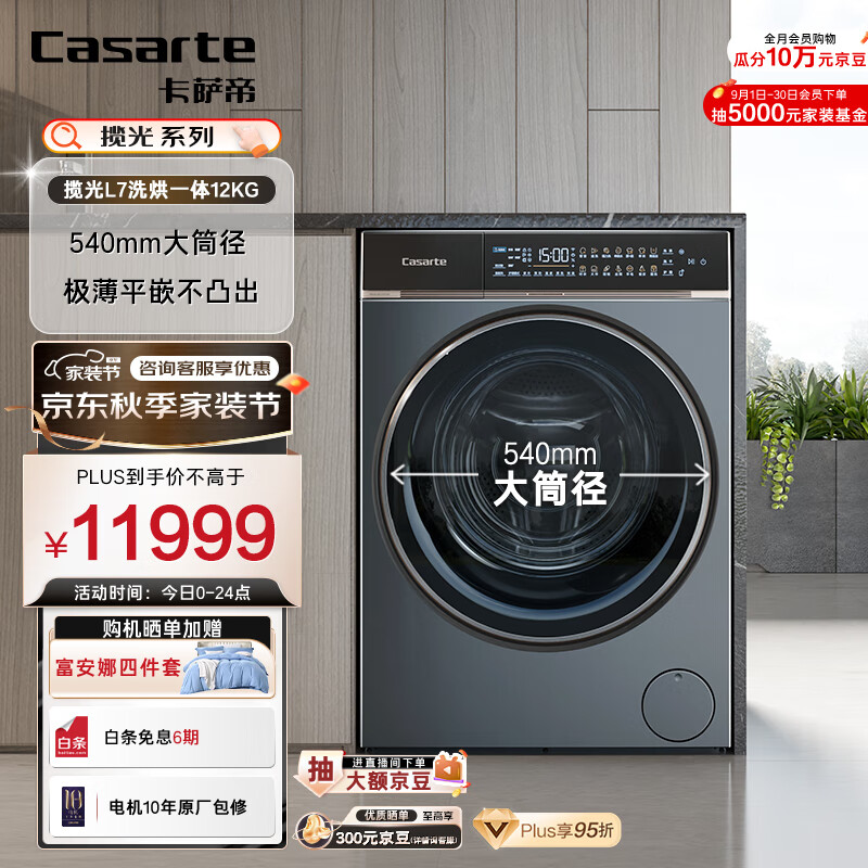 卡萨帝(Casarte)揽光L7滚筒洗衣机全自动家用 12公斤洗烘一体机 540大筒径超薄平嵌 精华洗快净省 C1 HDN12L7ELLU1价格:11999.00元!