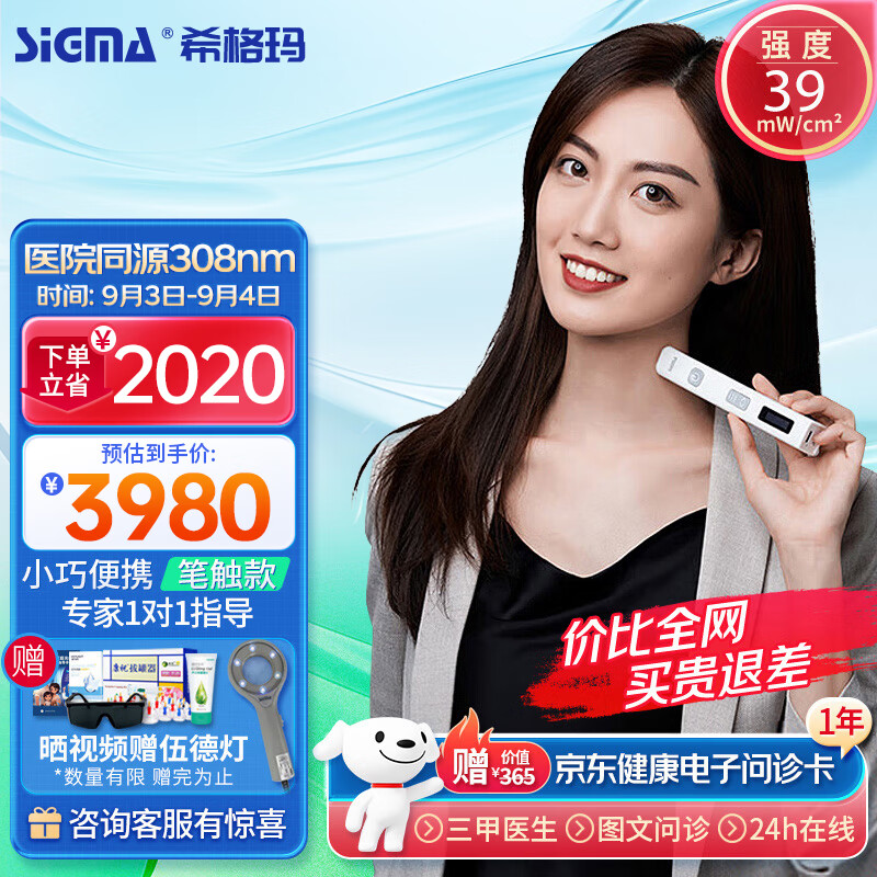 希格玛(SIGMA)白癜风治疗仪308光疗仪银屑病理疗仪适合小面积疑难部位SQ308PCQFD升级款【39mW高强度】价格:6000.00元!