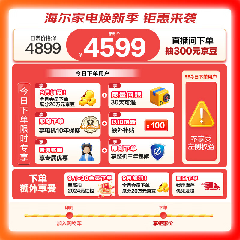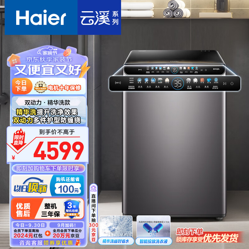 海尔(Haier)云溪波轮洗衣机全自动家用 10公斤 智能投放 精华洗 双动力防缠绕 免清洗以旧换新MS100-BRM286U1价格:4599.00元!