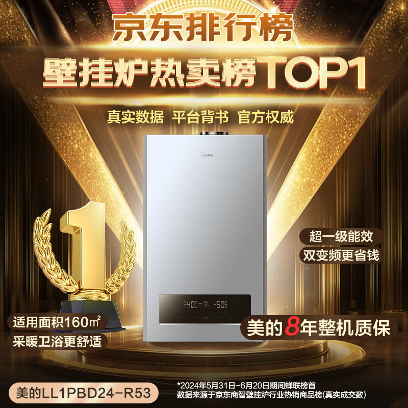美的(Midea)无极双变频一级能效低噪冷凝燃气壁挂炉天然气采暖地暖锅炉热水器以旧换新免辅材费LL1PBD24-R53价格:7499.00元!