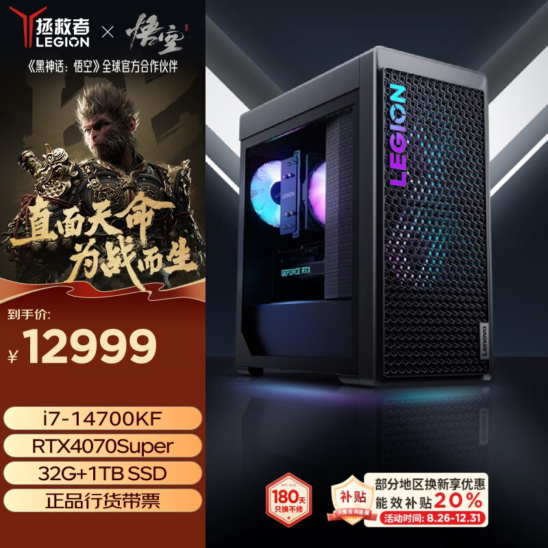 联想拯救者刃7000K游戏主机官方合作台式电脑14代i7-14700KF RTX4070S 12GB显卡32G价格:12999.00元!