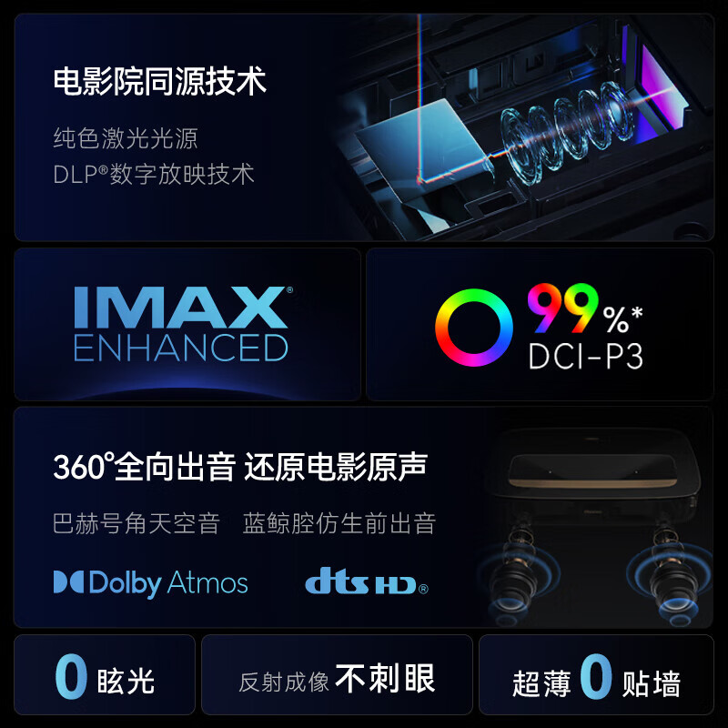 2、原本还怕激光电视白天会看不清楚,没想到完全不惧白天的阳光,又大又清楚,声音特别好像在影院,买回家媳妇孩子也喜欢!尺寸大小:100寸功能效果:好