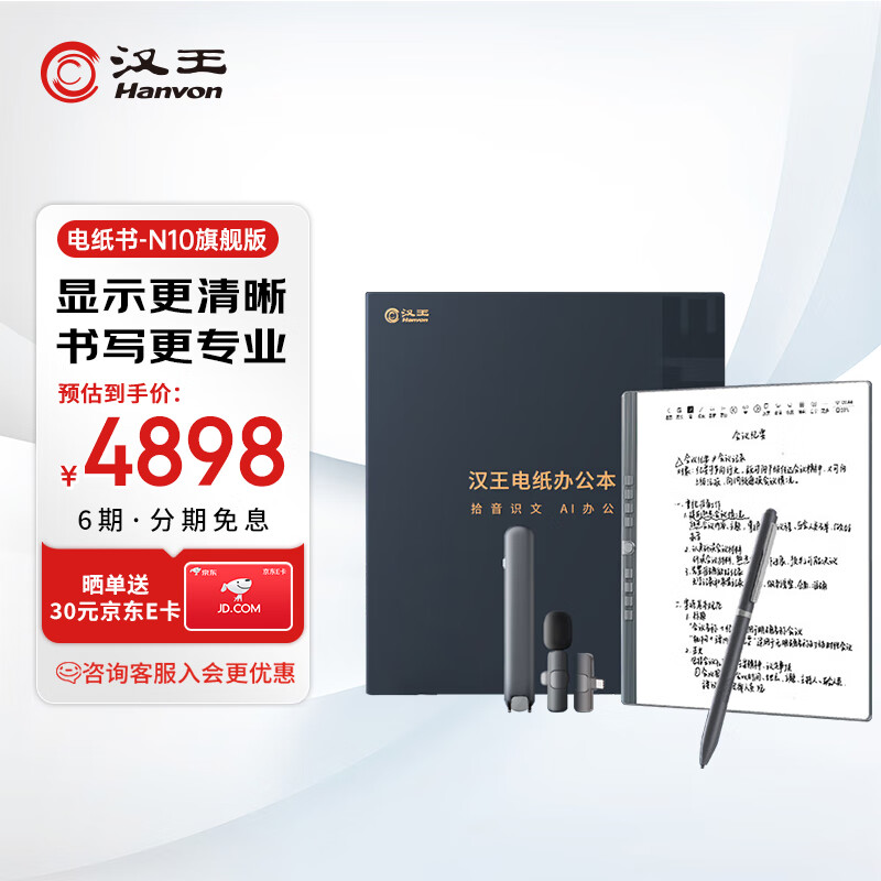 汉王N10电纸办公本 10.3英寸手写电纸本电子书阅读器墨水屏电纸书平板电子笔记本智能办公本价格:4898.00元!