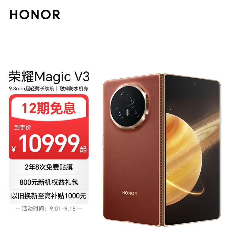荣耀Magic V3 新款折叠屏 超轻薄长续航 耐摔防水机身 第三代骁龙8 16+1TB 丝路敦煌 拍照 5G AI手机价格:10999.00元!