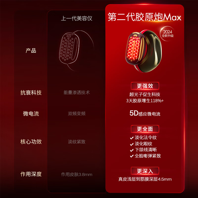 极萌第二代胶原炮Max美容仪【专区淡纹】淡纹嫩肤家用面部美容仪生日礼物教师节礼物送女生送妈妈面膜价格:3499.00元!