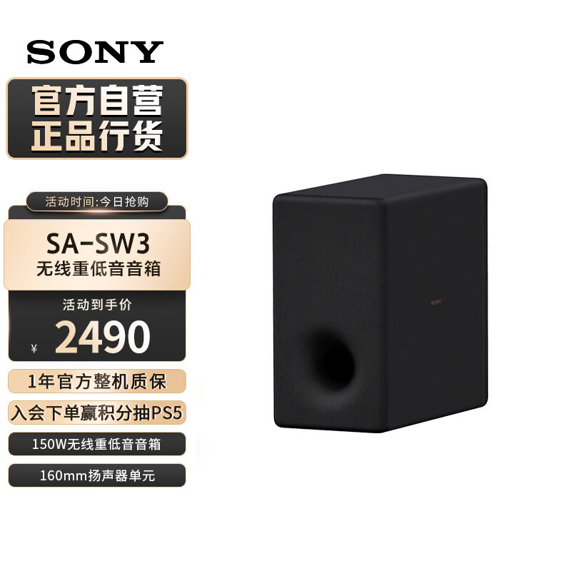 索尼(SONY)SA-SW3 150W无线重低音音箱(HT-A7000理想搭档)价格:2490.00元!