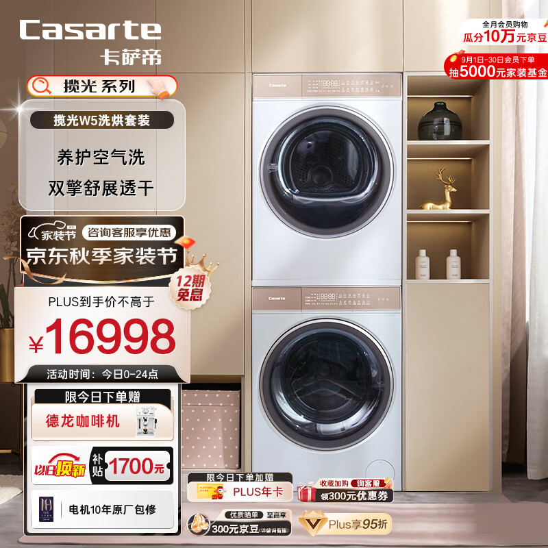 卡萨帝(Casarte)揽光W5洗烘套装 10KG直驱滚筒洗衣机全自动+双擎热泵烘干机家用组合 月光宝盒 以旧换新10W5+10FW5价格:16998.00元!