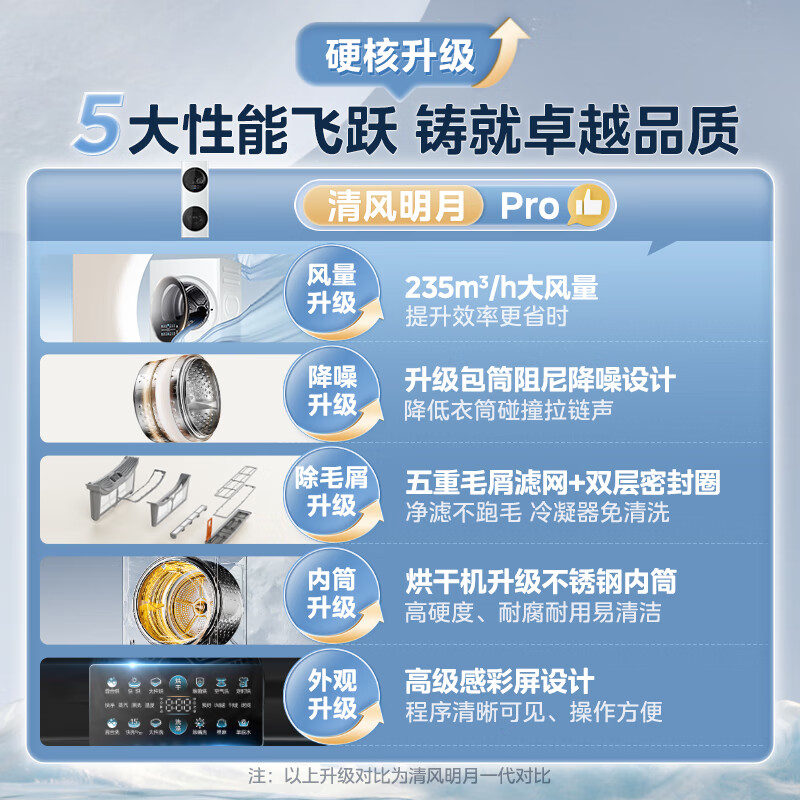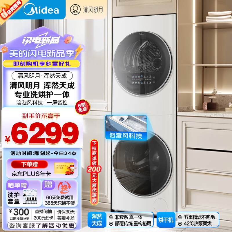 美的(Midea) 洗烘套装 10公斤滚筒洗衣机+热泵烘干机【清风明月】超薄全嵌 洗烘护一体机 MGH20VE5PRO隐形嵌价格:5799.00元!