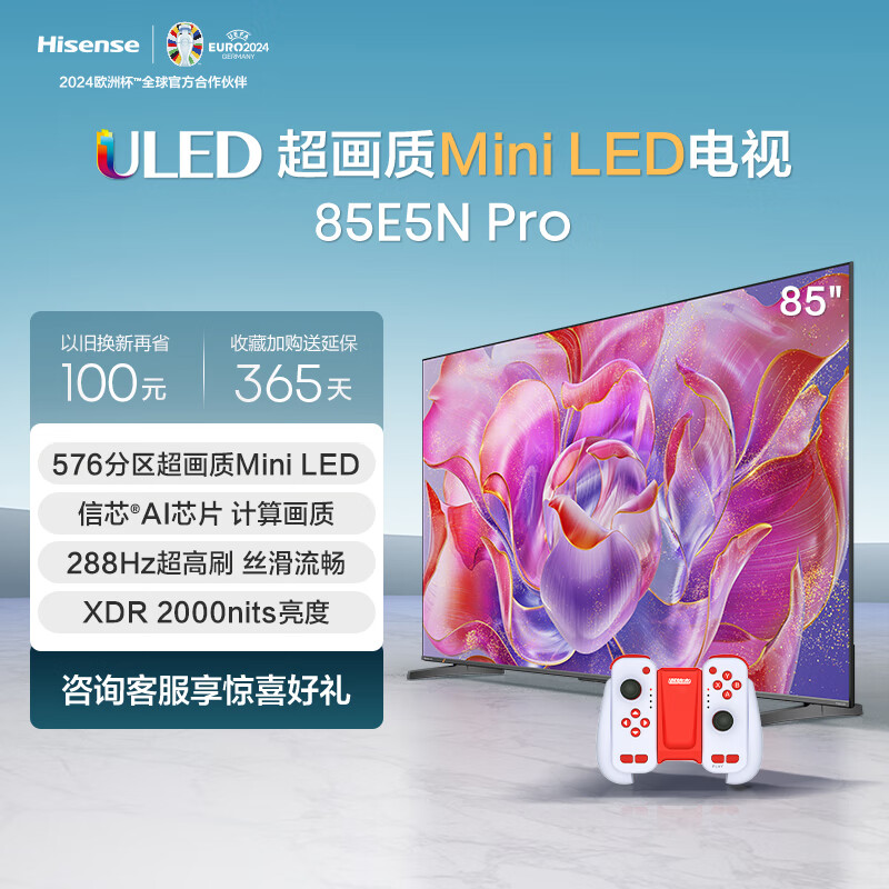 海信ULED超画质电视85E5N Pro+运动加加Gemini分体手柄三合一体感交互手柄套装 85英寸电视机价格:7398.00元!