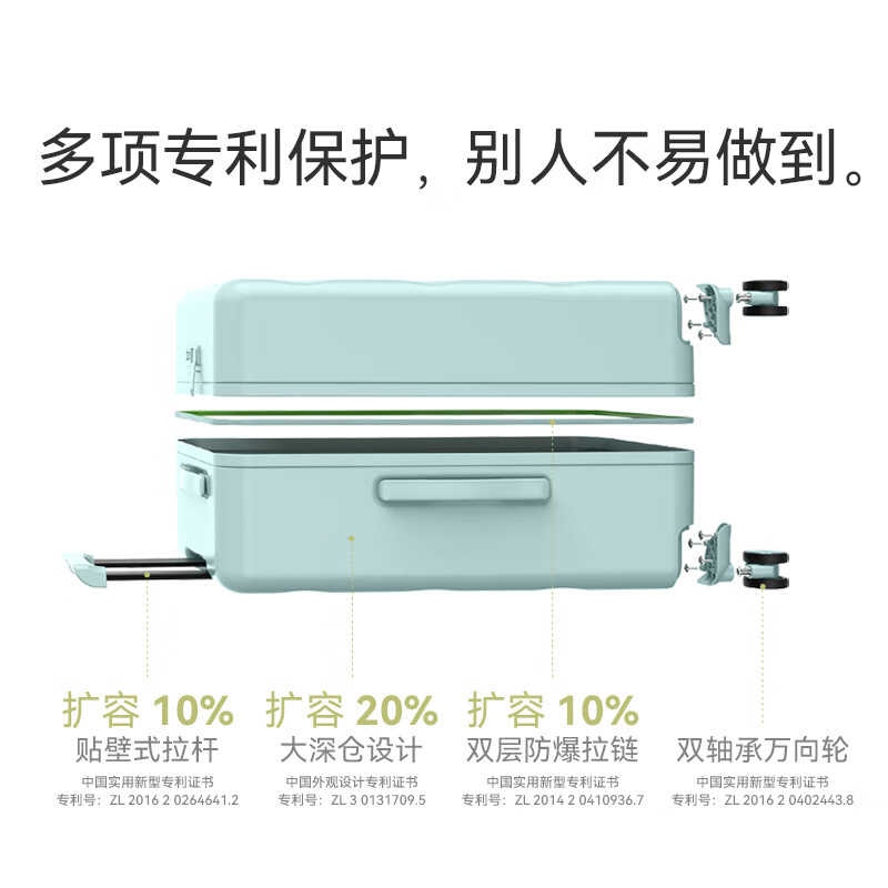 1、之前买了24的,这次活动我买20蓝色的,本人很喜欢这个颜色,轮子很顺滑,拉杆也很结实,期待带着它出行,喜欢的亲们可以入手,本人觉得性价比很高