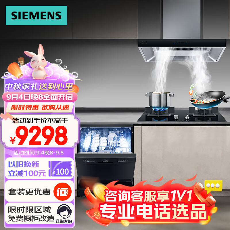 西门子厨电套装 14套大容量家用洗碗机 吸油烟机灶具套装(天然气)SJ23HB66KC+951W+ER8KJF23MP价格:9297.00元!