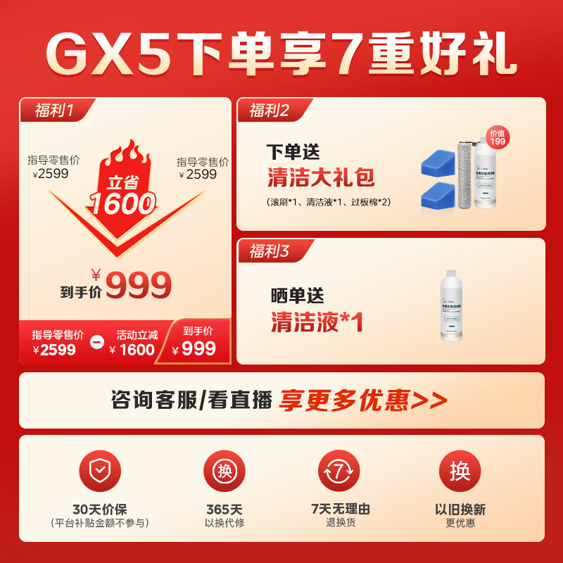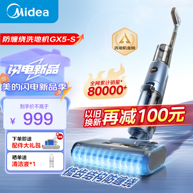 美的(Midea)洗地机GX5-S无线家用洗拖吸一体机自动清洁无尘感洗地机 实时电解水防缠绕拖地机价格:999.00元!