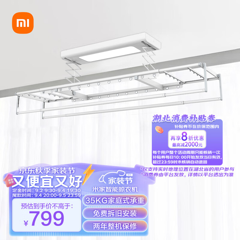 米家智能晾衣机 电动晾衣架无线遥控升降阳台伸缩晾衣杆 小米价格:799.00元!