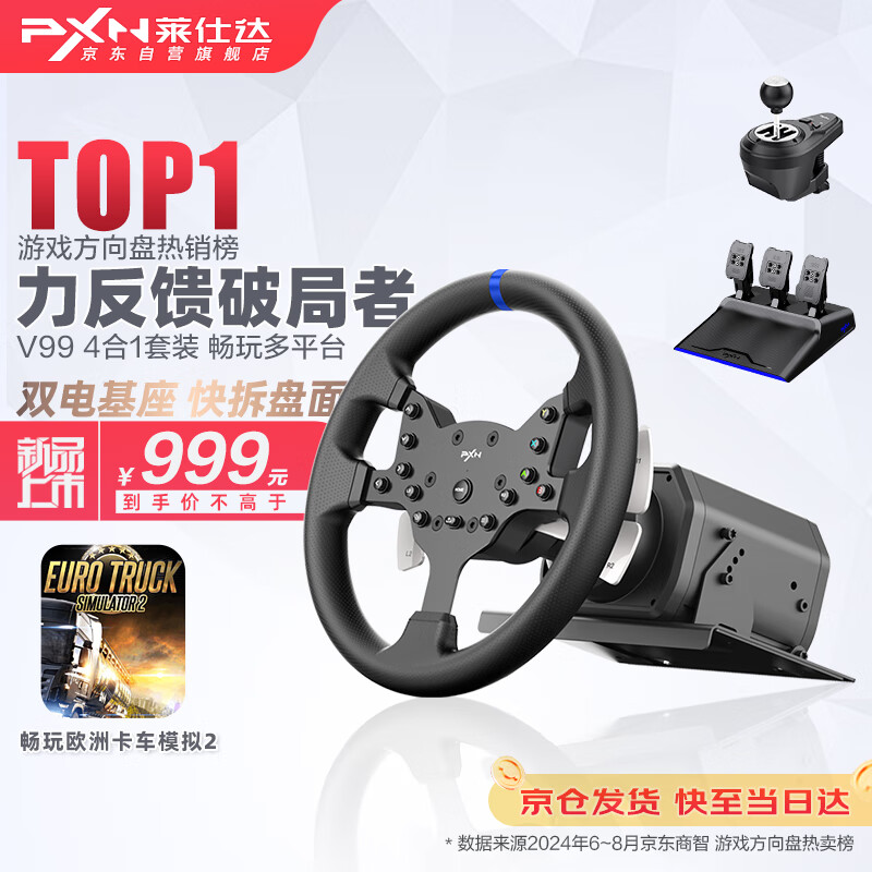 莱仕达PXN V99力反馈900度赛车游戏方向盘PS4电脑PC模拟器欧卡2神力科莎地平线5极限竞速8价格:999.00元!